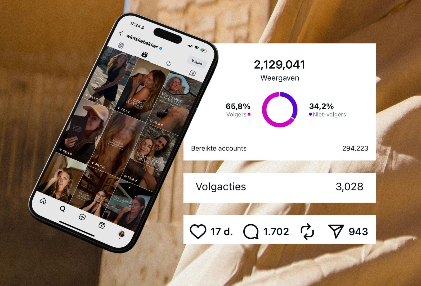 PS. Verwacht geen “zet je wekker om 07:13 want dat is hét postmoment”-trucs. Deze tips zijn letterlijk de kleine tweaks die ik zelf dagelijks toepas – de dingen die van mijn feed en stories een vibe maken en waardoor mensen WEL blijven hangen.